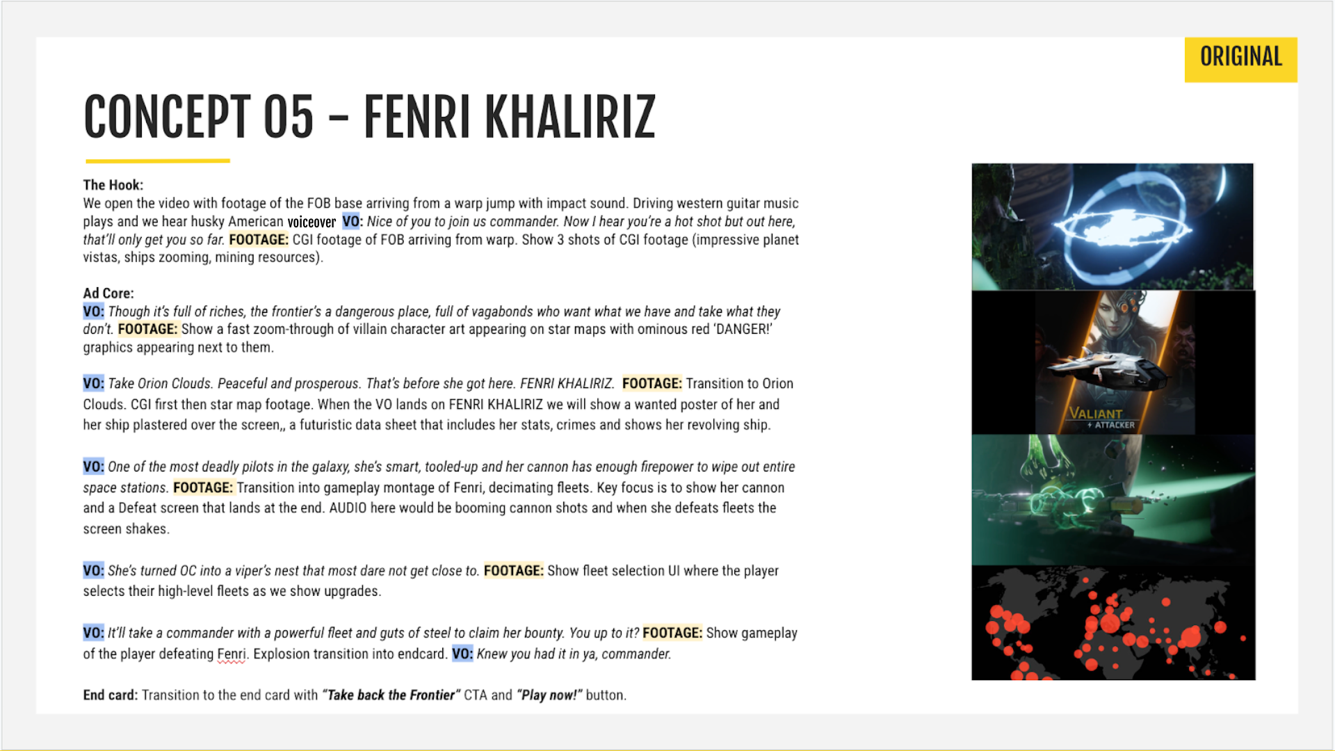 To better align with player expectations, we shifted to story-driven, voiceover-led creatives with a āSpace Cowboyā toneāan approach that had already proven successful in the global trailer. This shift captured the gameās deep lore and complex mechanics, resonating more effectively with strategy enthusiasts.